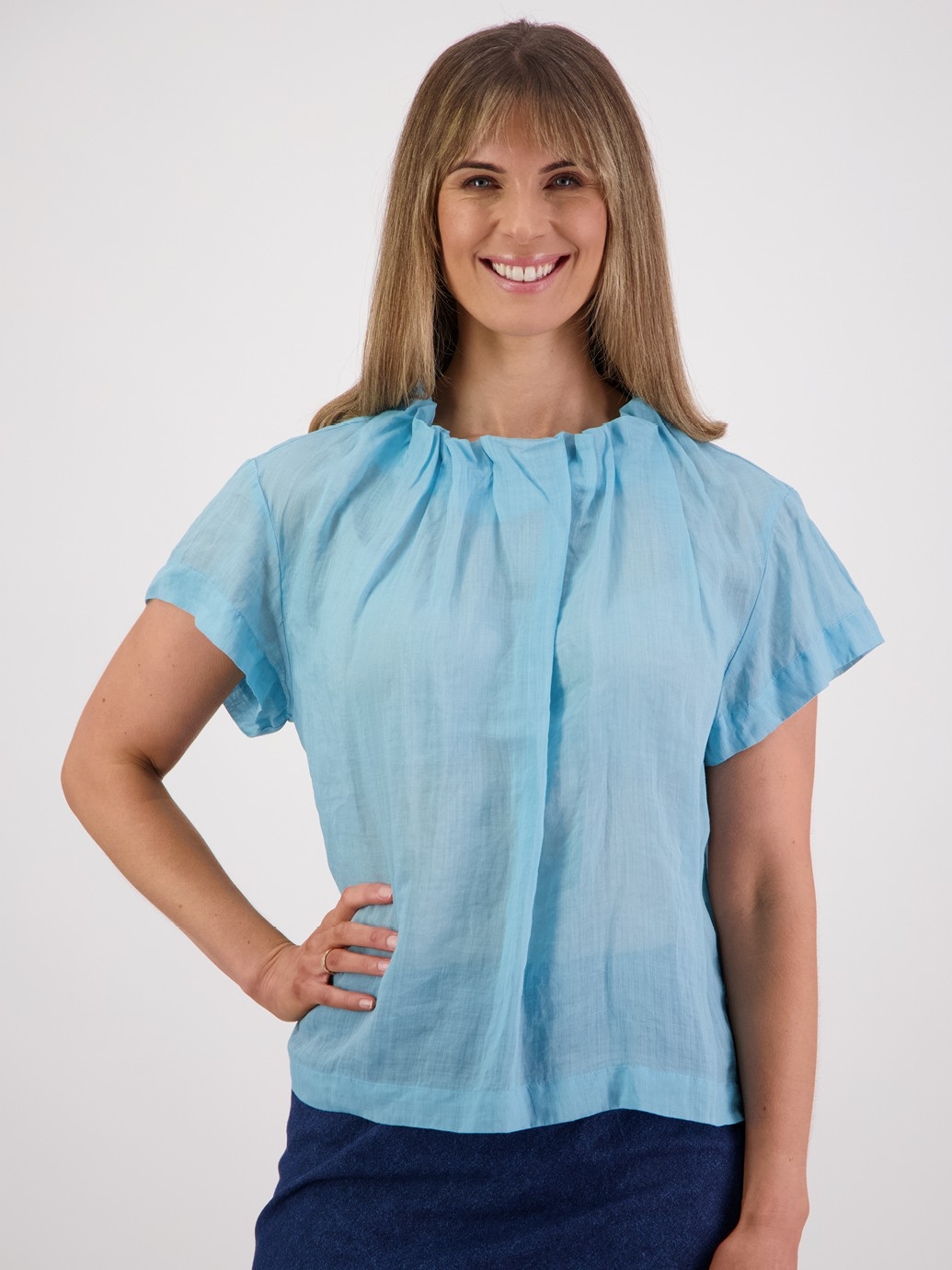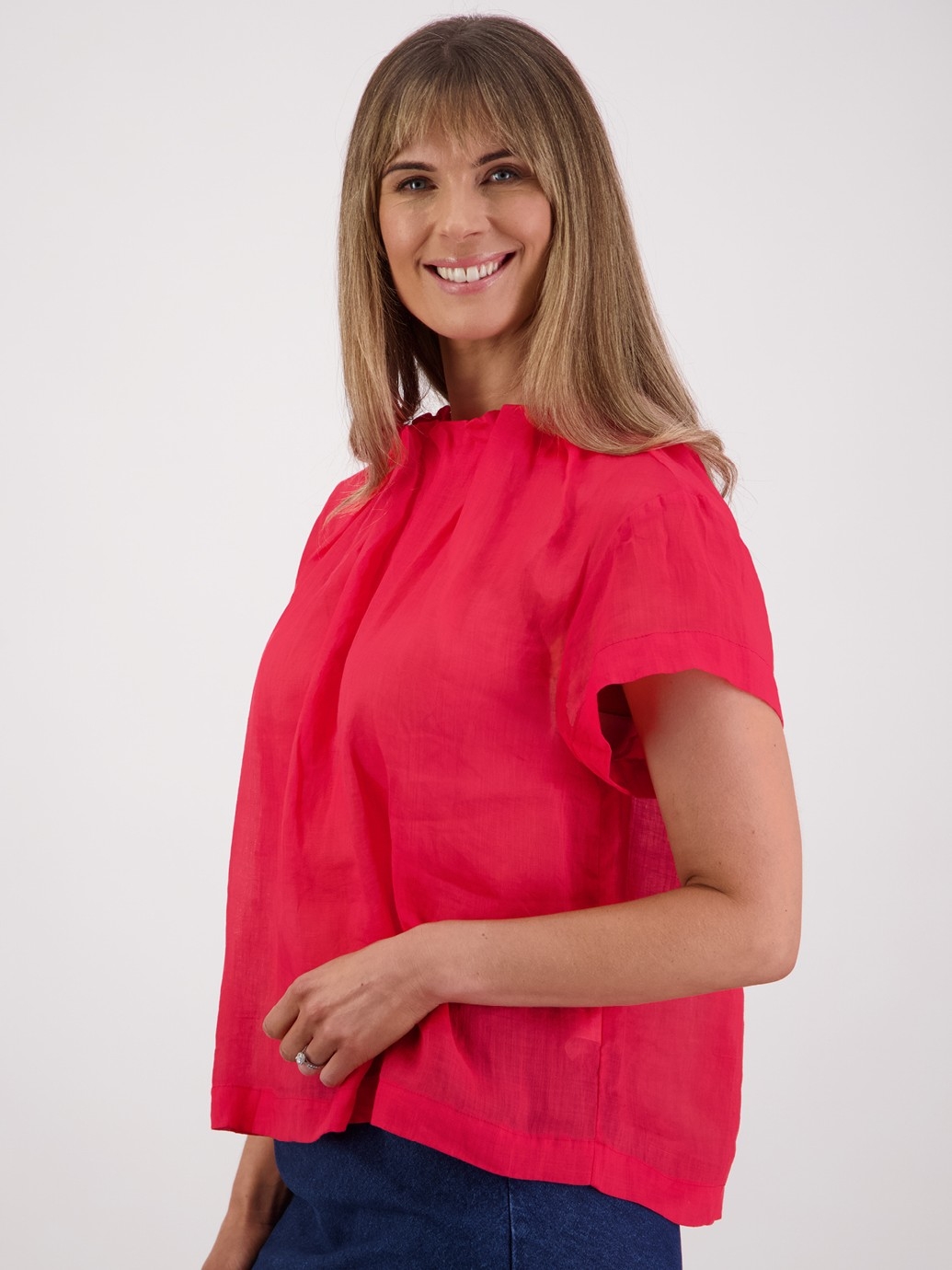 Description:Pia is the Ramie sister to top-seller Jackie. A past season favourite for its versatility, in a range of fresh colours. With her special pleat neck detail, she's the perfect choice for any event, ready to add a spark to your wardrobe.