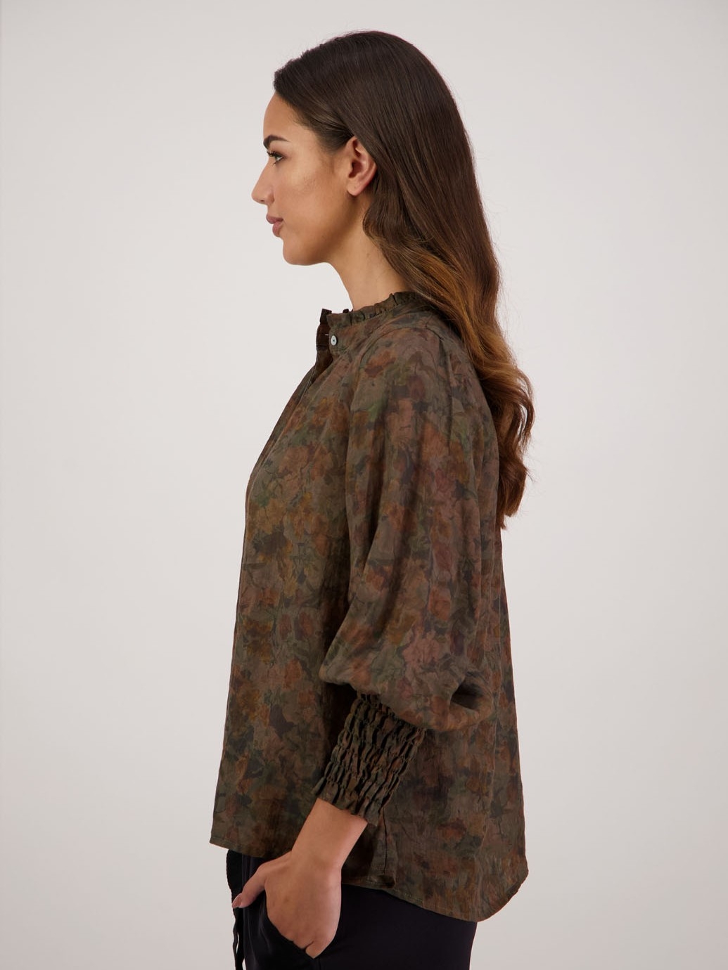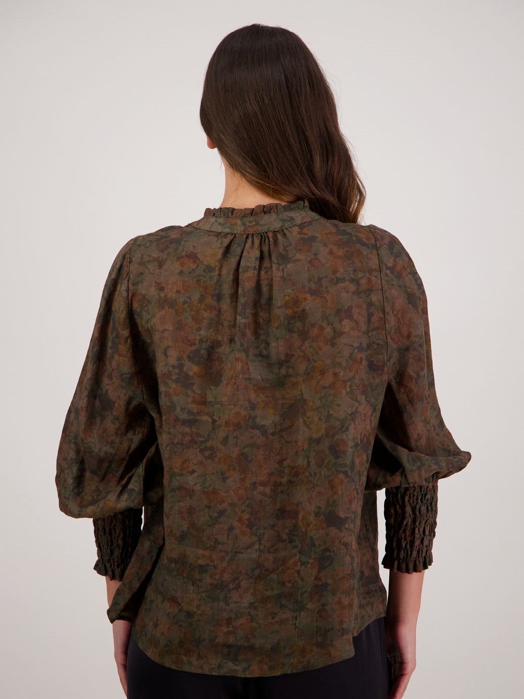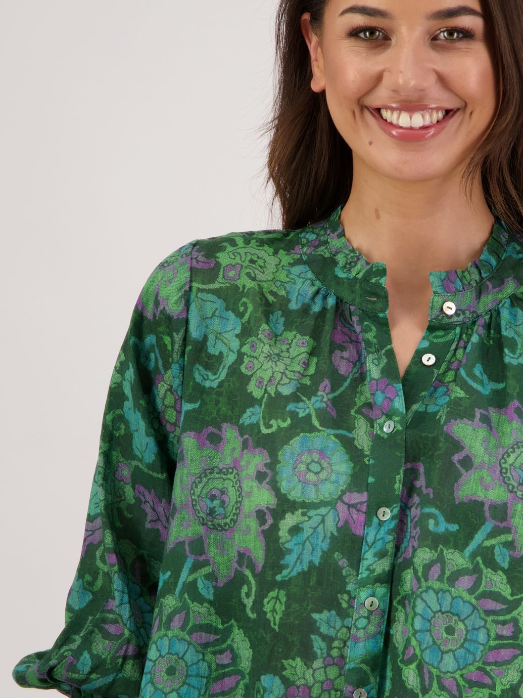 The Raewyn Shirt is crafted from 100% printed ramie and reimagines our bestselling Audrey silhouette with a fresh, feminine feel. Designed in the classic Audrey shape, it features a delicate ruffle around the neckline, a button-through front and full-length sleeves finished with softly shirred wrists. An effortlessly elegant style that’s easy to wear and endlessly versatile.