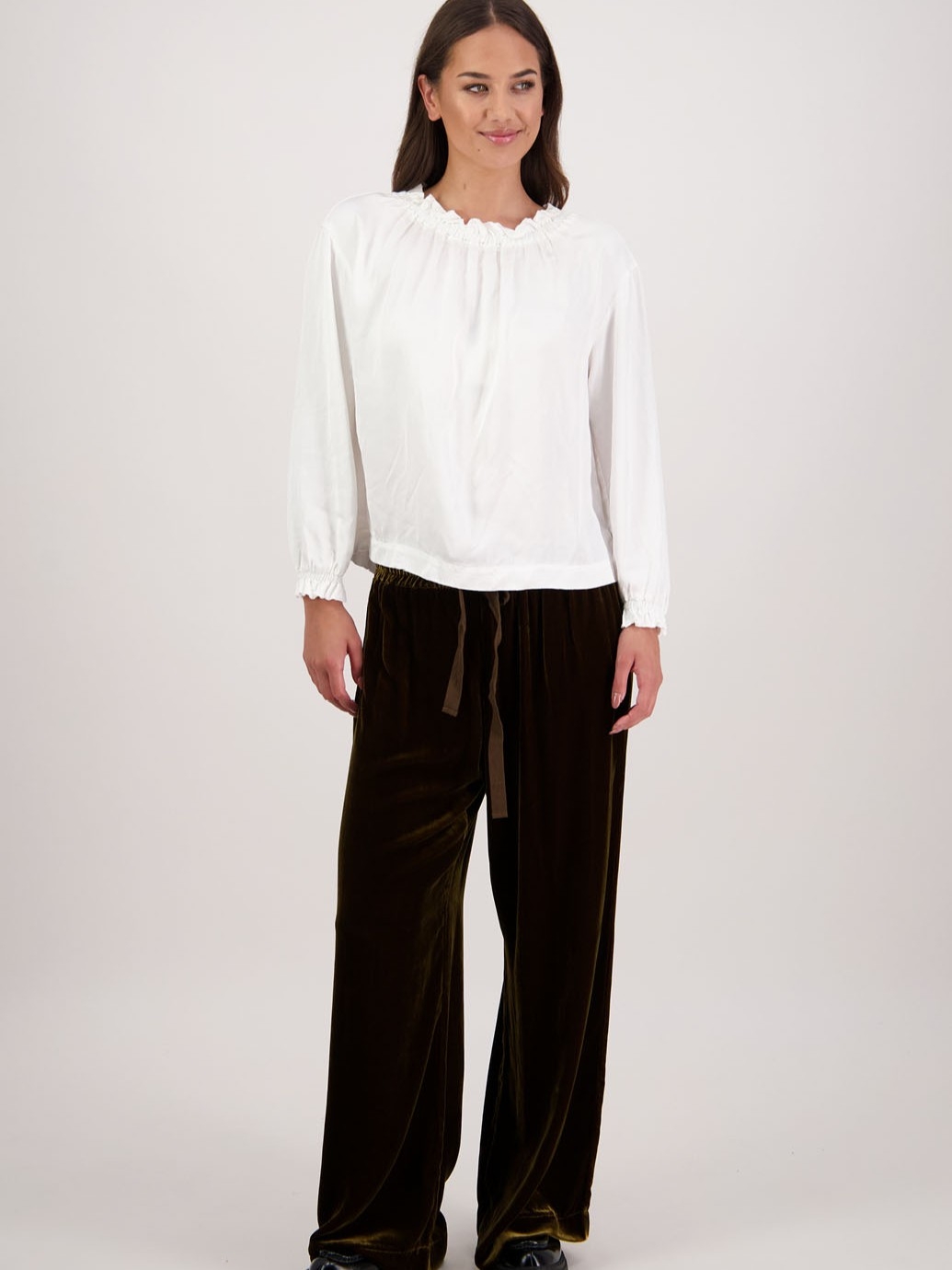 Inspired by our bestselling Santana and Hebe styles, the Reggie Pant is crafted from a sumptuous silk–viscose velvet blend. Featuring a straight leg, elasticated waist with tie, and practical pockets, it’s an effortlessly chic piece designed for comfort and versatility.