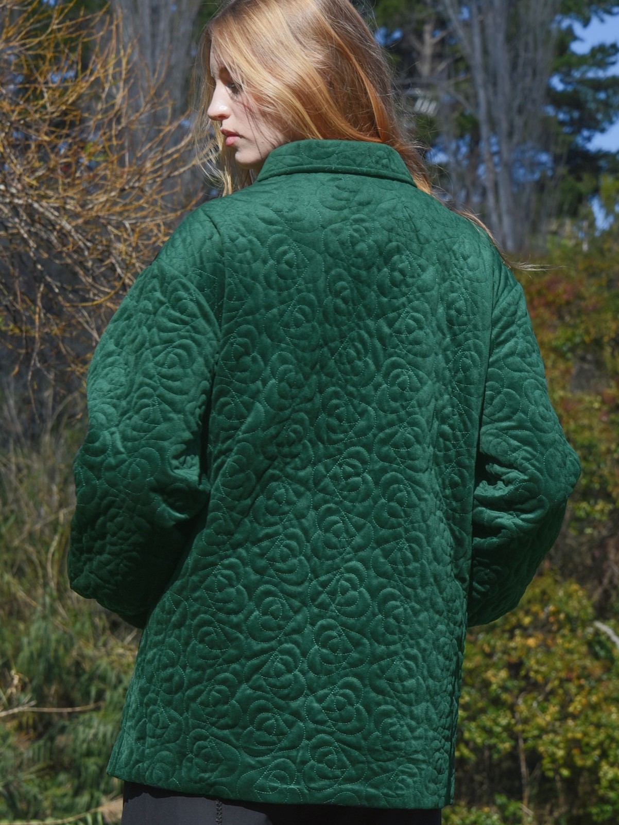A rich floral quilted velvet elevates the 'Proven Quilty' jacket, crafted in 'Quilty by Suspicion'. Its dual-ended zip front allows versatile styling, while blouson sleeves with fixed cuffs add subtle volume and shape. Thoughtfully designed with side pockets and a fully lined interior, this jacket blends tactile luxury with modern, fashion-led functionality.