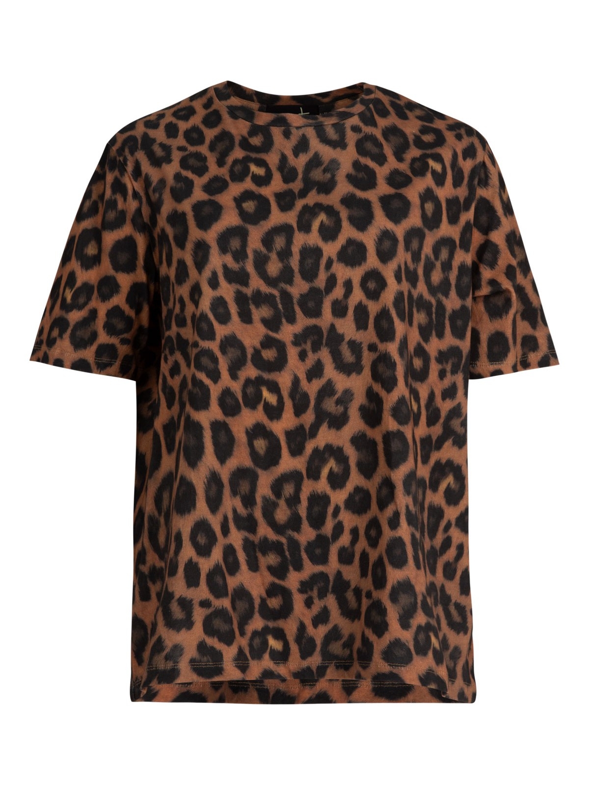 Bring a bold touch to your casual wardrobe with the 'Safari Supreme' T-shirt, crafted from soft, stretchy 'Charmed to Meet You' cotton blend. Featuring a striking leopard print, this tee combines comfort with standout style, making it perfect for pairing with jeans, skirts, or layering under jackets for effortless statement dressing.