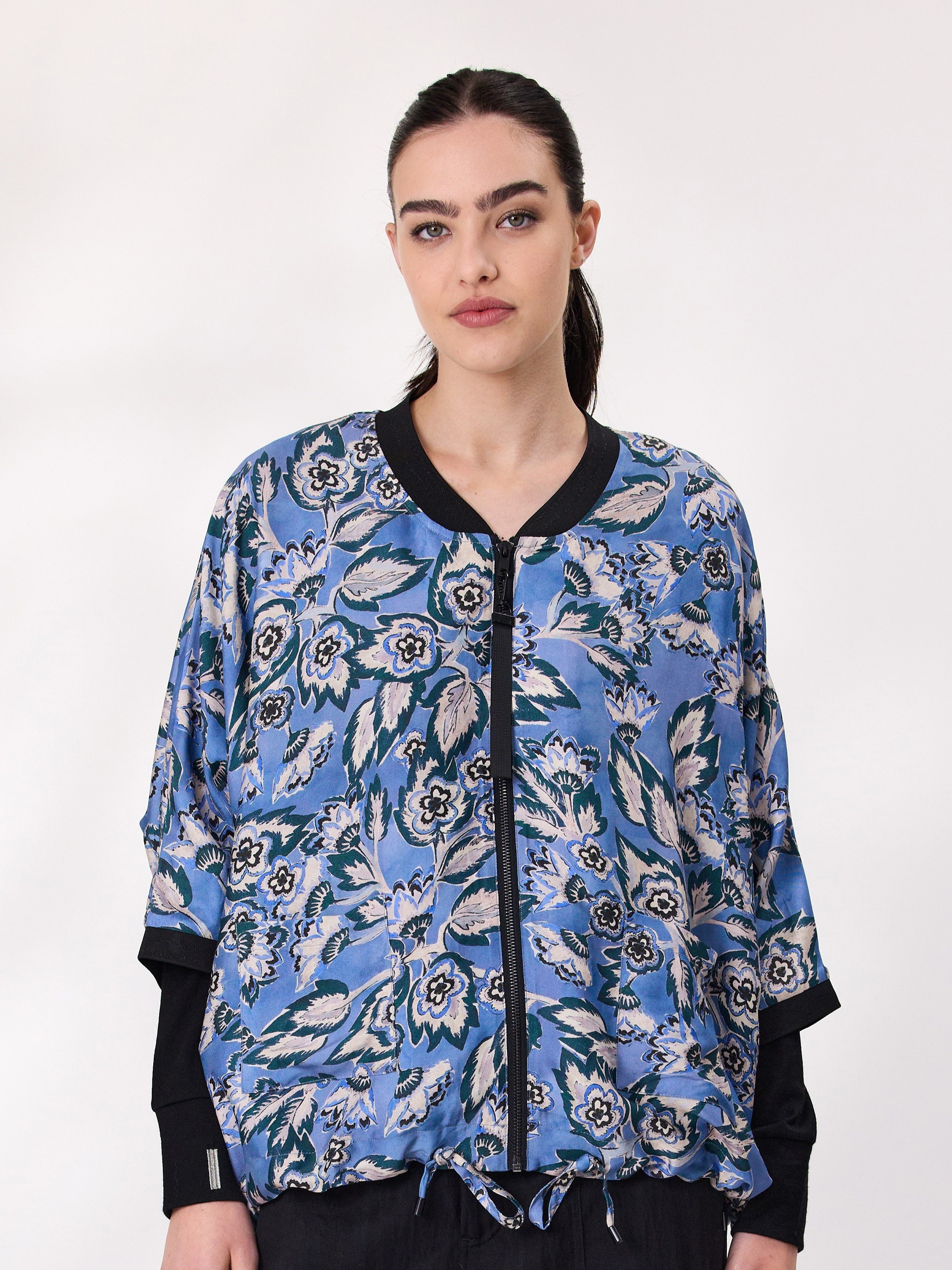 Add a touch of elegance to your wardrobe with the Delphi jacket. Featuring a vibrant print, this jacket is finished with black ribbed neck band and cuffs for a sleek contrast.The front zipper closure offers easy wearability, while side pockets provide everyday convenience.