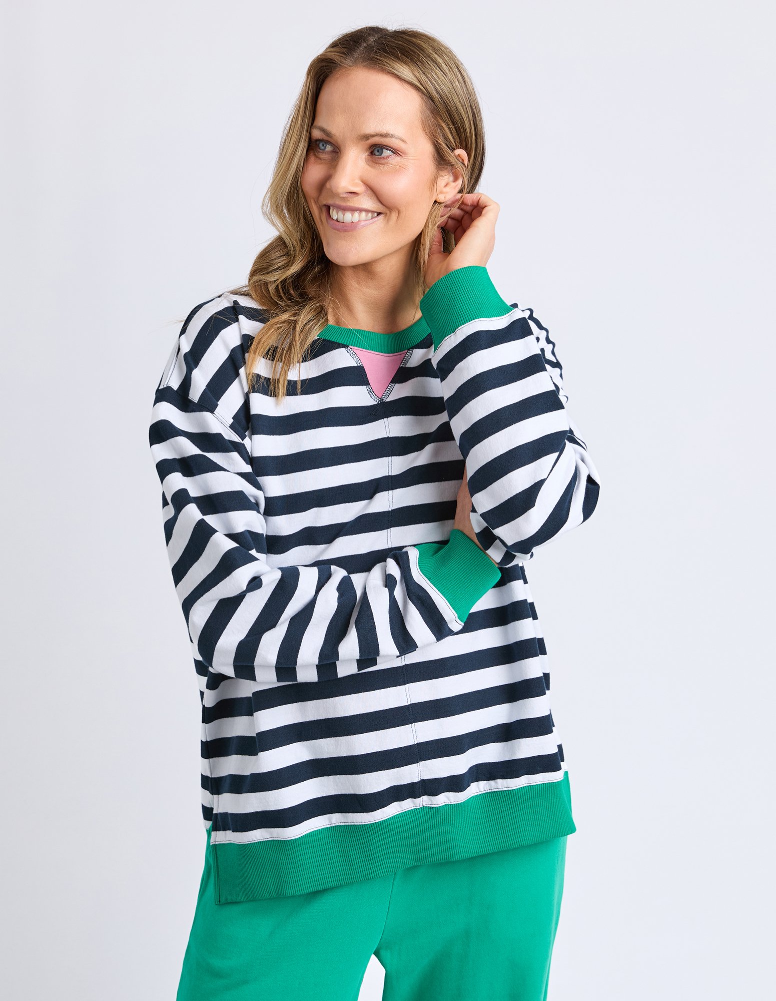 The Elm Maps Crew is a relaxed, oversized layer featuring yarn-dyed stripes and contrast rib detailing. Crafted from 100% cotton, it’s designed for easy, everyday comfort. Style with relaxed denim or trackpants and sneakers for effortless off-duty wear.