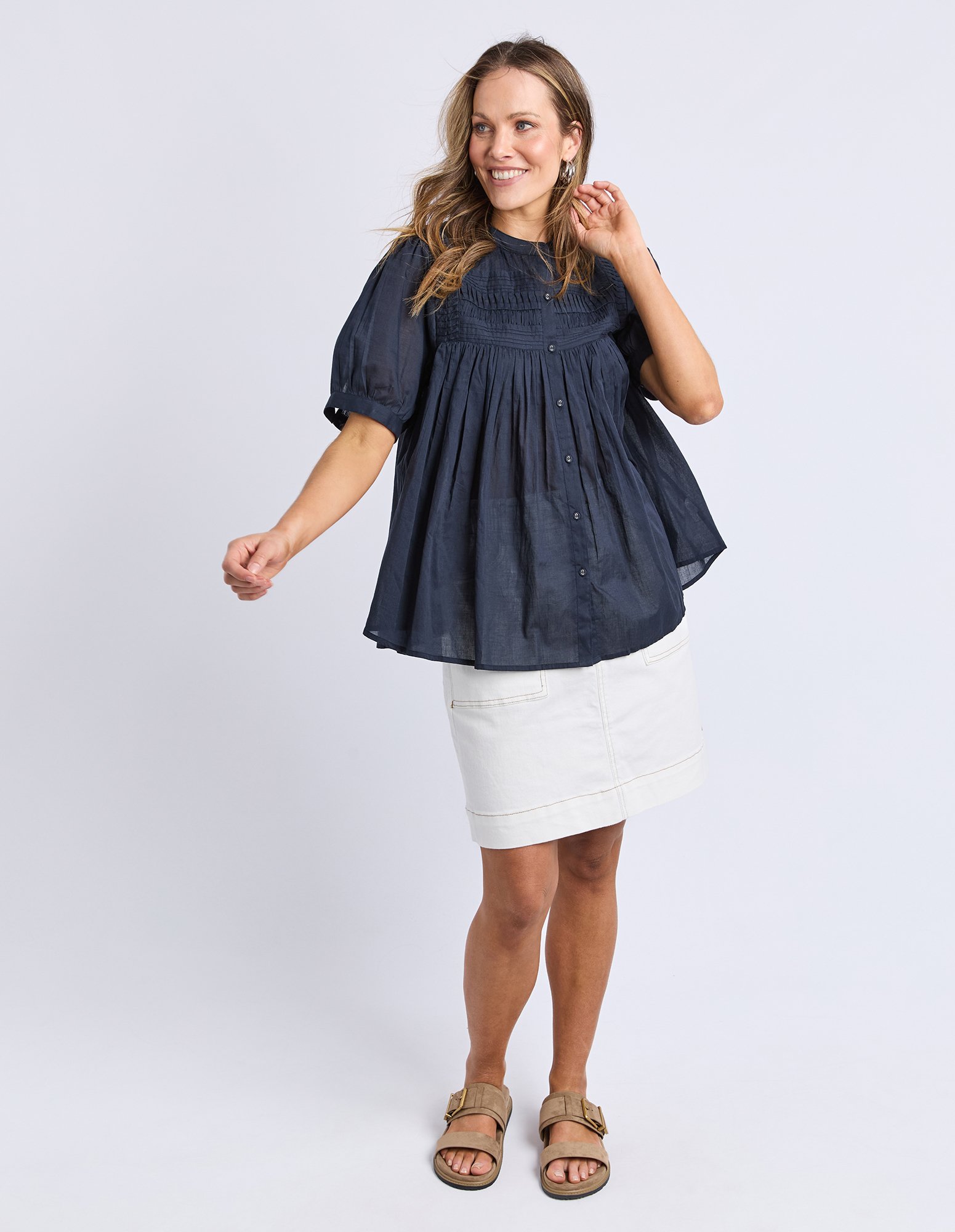 Float through your day in this stunning ultra light cotton voile shirt. Featuring pretty pintuck details on the front placket and a full button front, this oversized/relaxed fitting shirt is perfect for wearing atop your favourite bottoms.