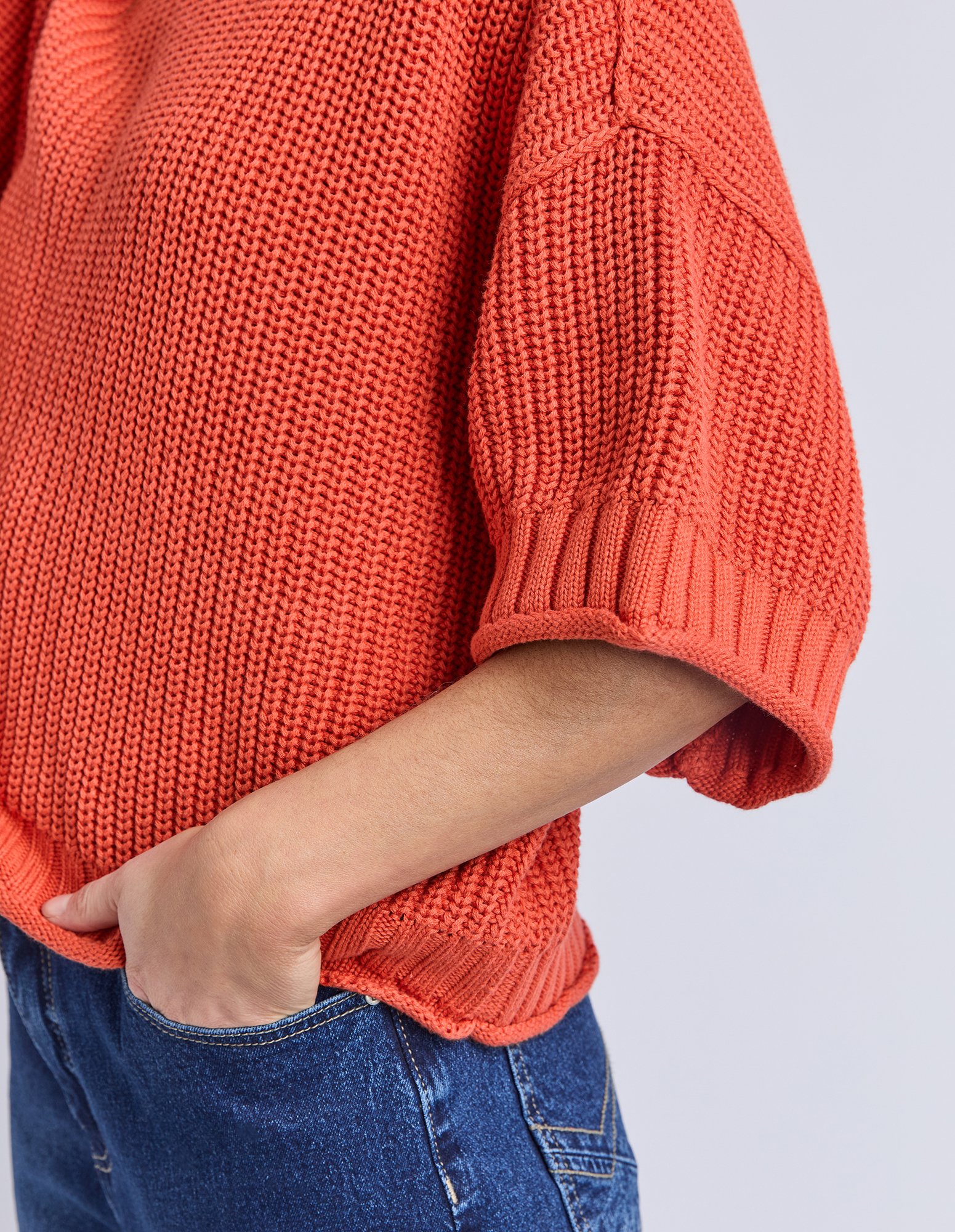 The Elm Luella Short Sleeve Knit is an easy throw-on layer with a relaxed fit and textured knit feel. Finished with ribbed trims and soft volume sleeves for an effortless everyday look.