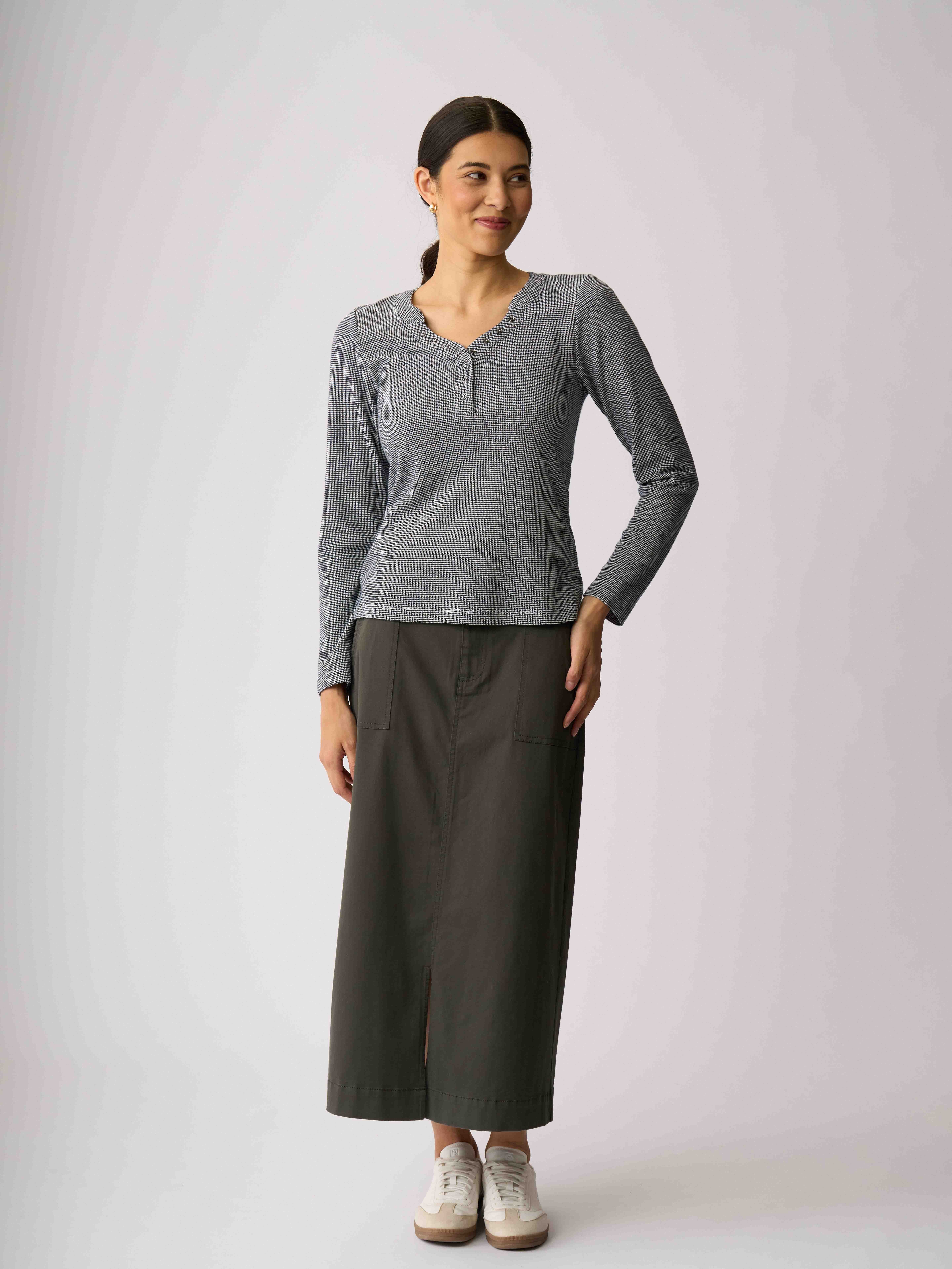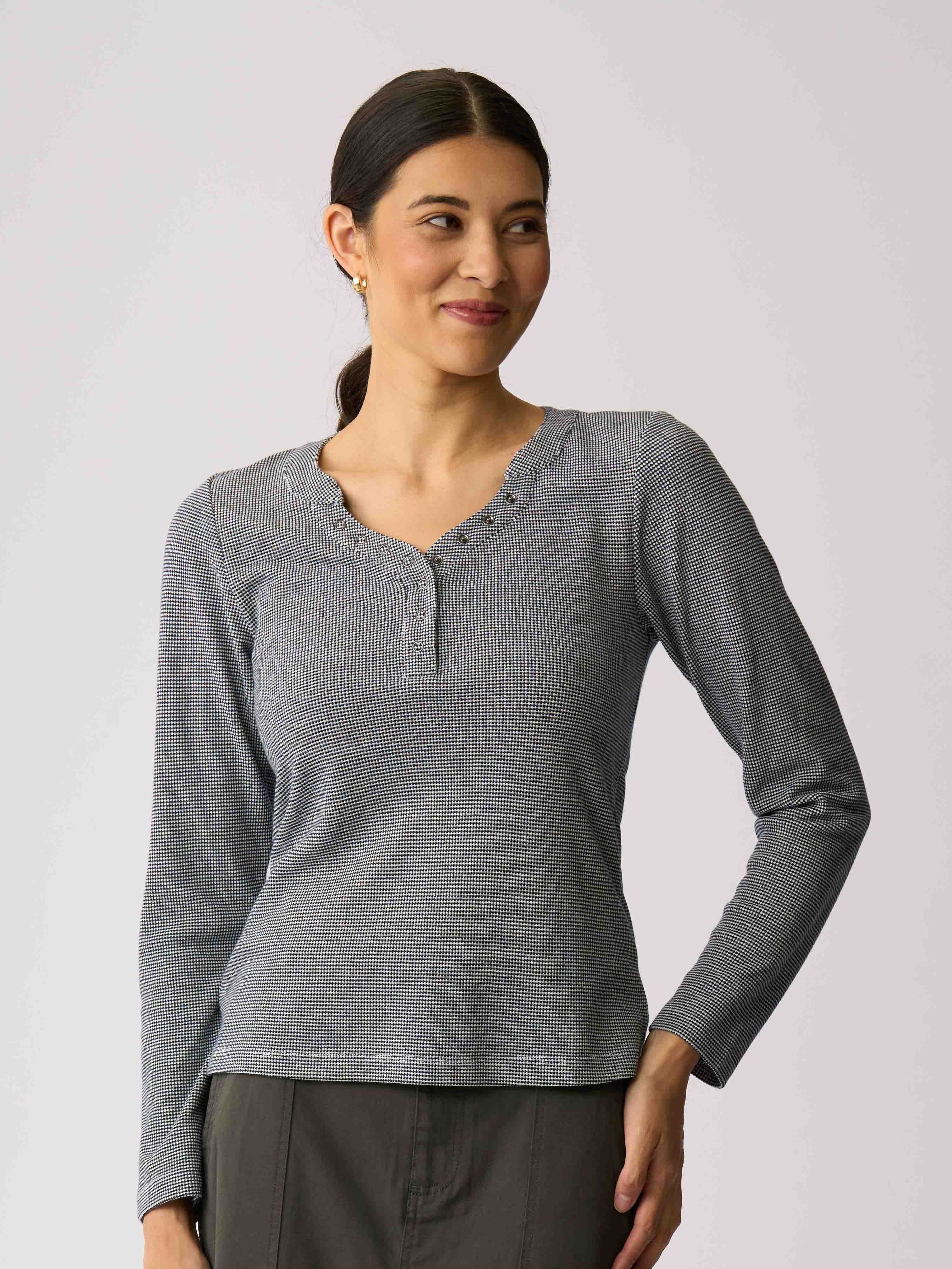 Esplanade Snappy V Henley Top - STYLE-TOPS : MCRAES - ESPLANADE W26 redhot fashions