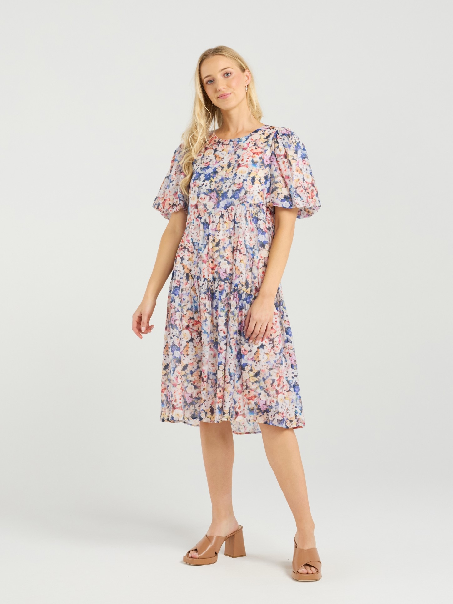 Get ready to embrace effortlessly cool vibe in our cute Becks Dress. Showcasing pretty puff sleeves for a playful touch, while the flared body with a asymmetric skirt panels adds movement and ease. The round neck and the lovely rayon blend fabric ensures comfort and style all day long. A must have for summer, dress up with strappy sandals or down with flats.