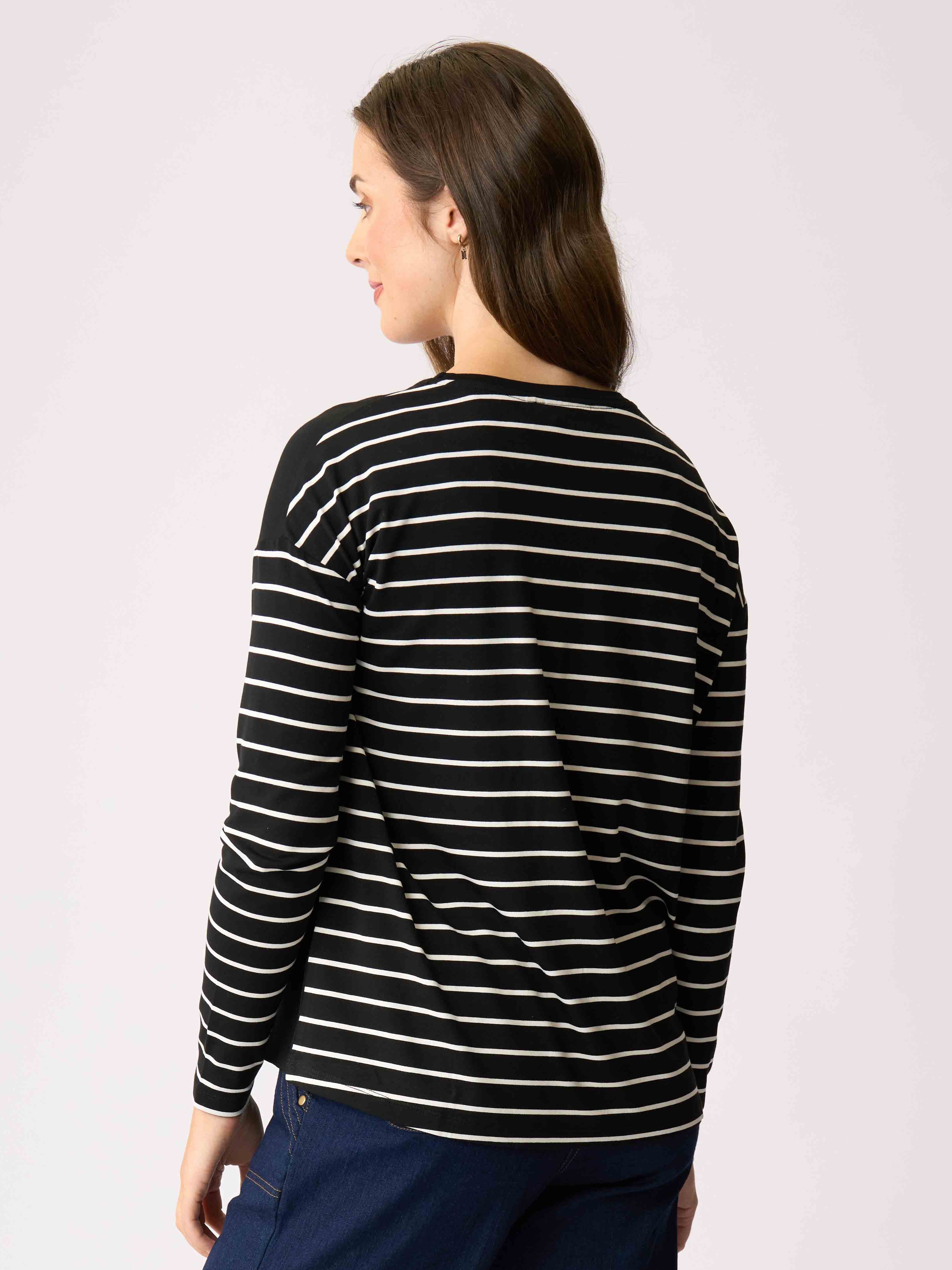 - Drop shoulder and scoop neck with long sleeves.