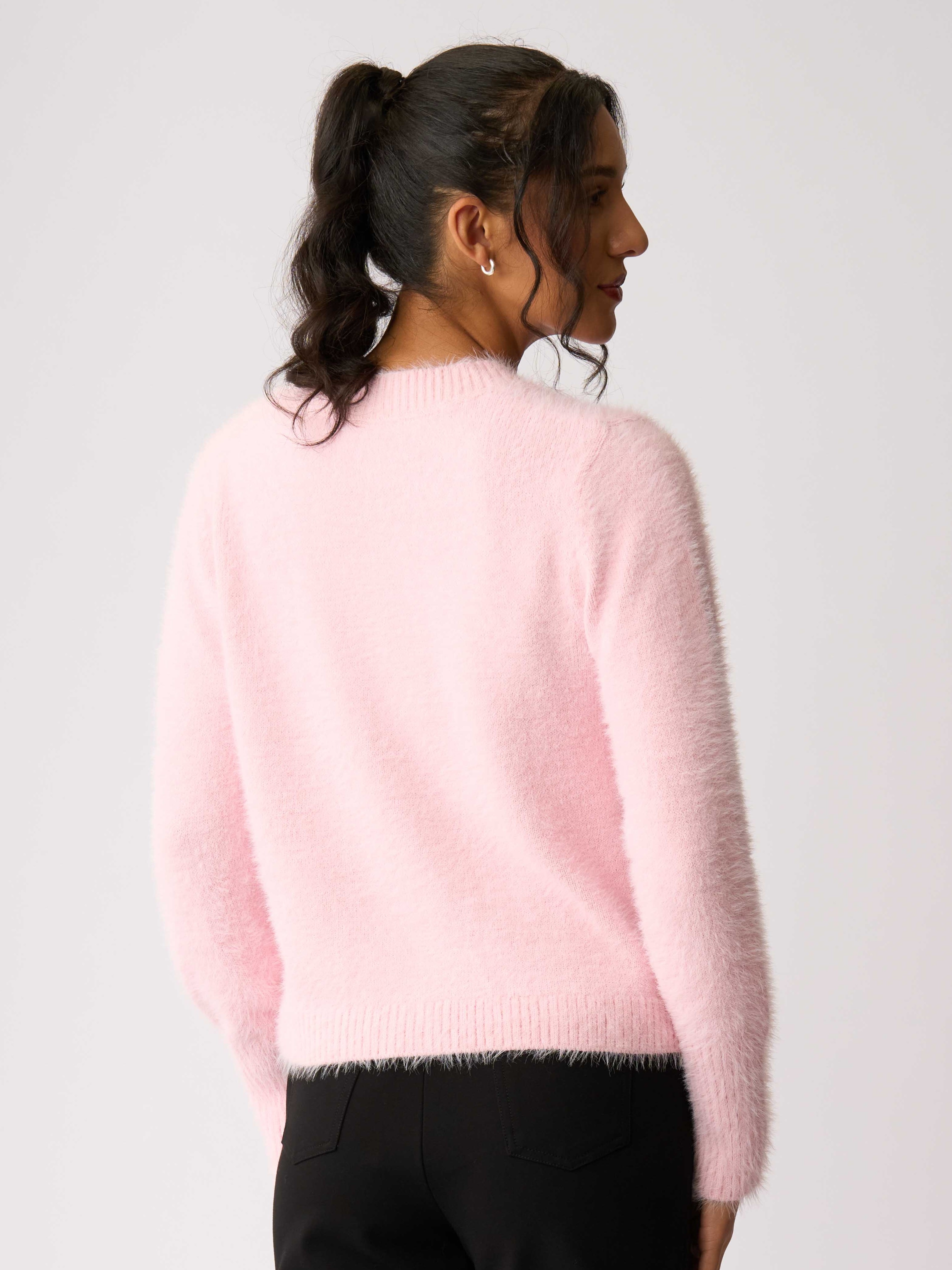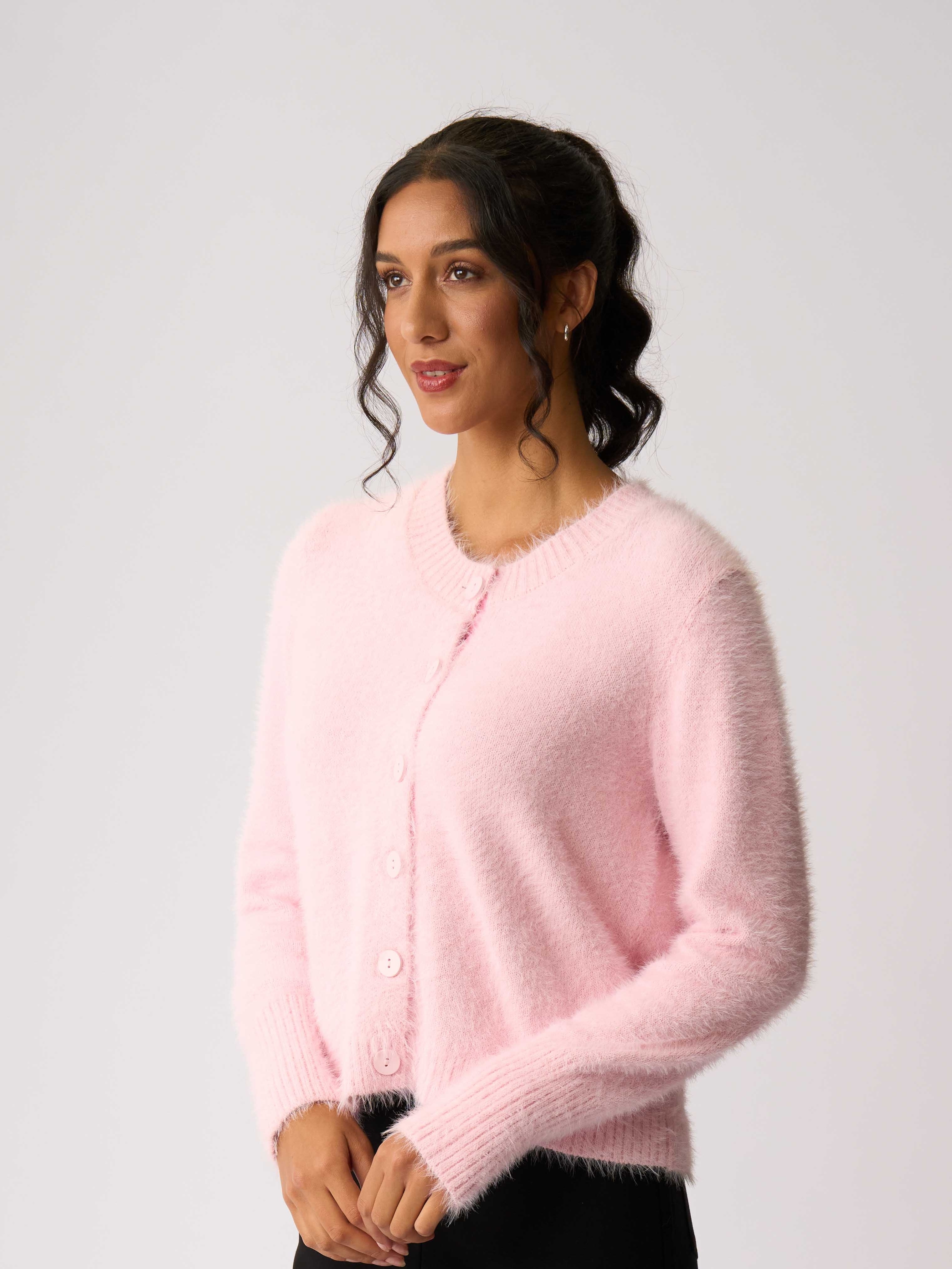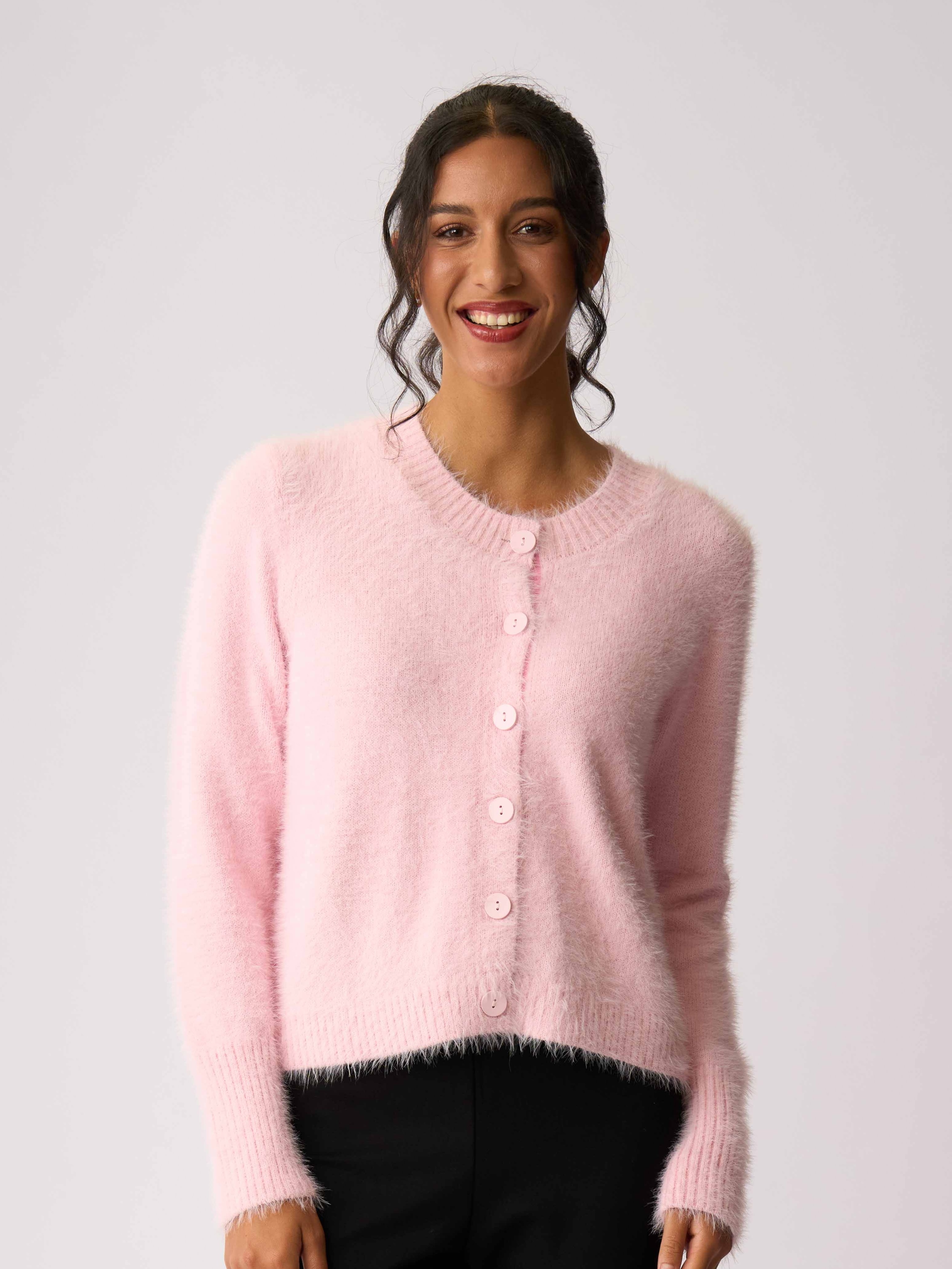 - This fluffy cardigan has a relaxed fit.