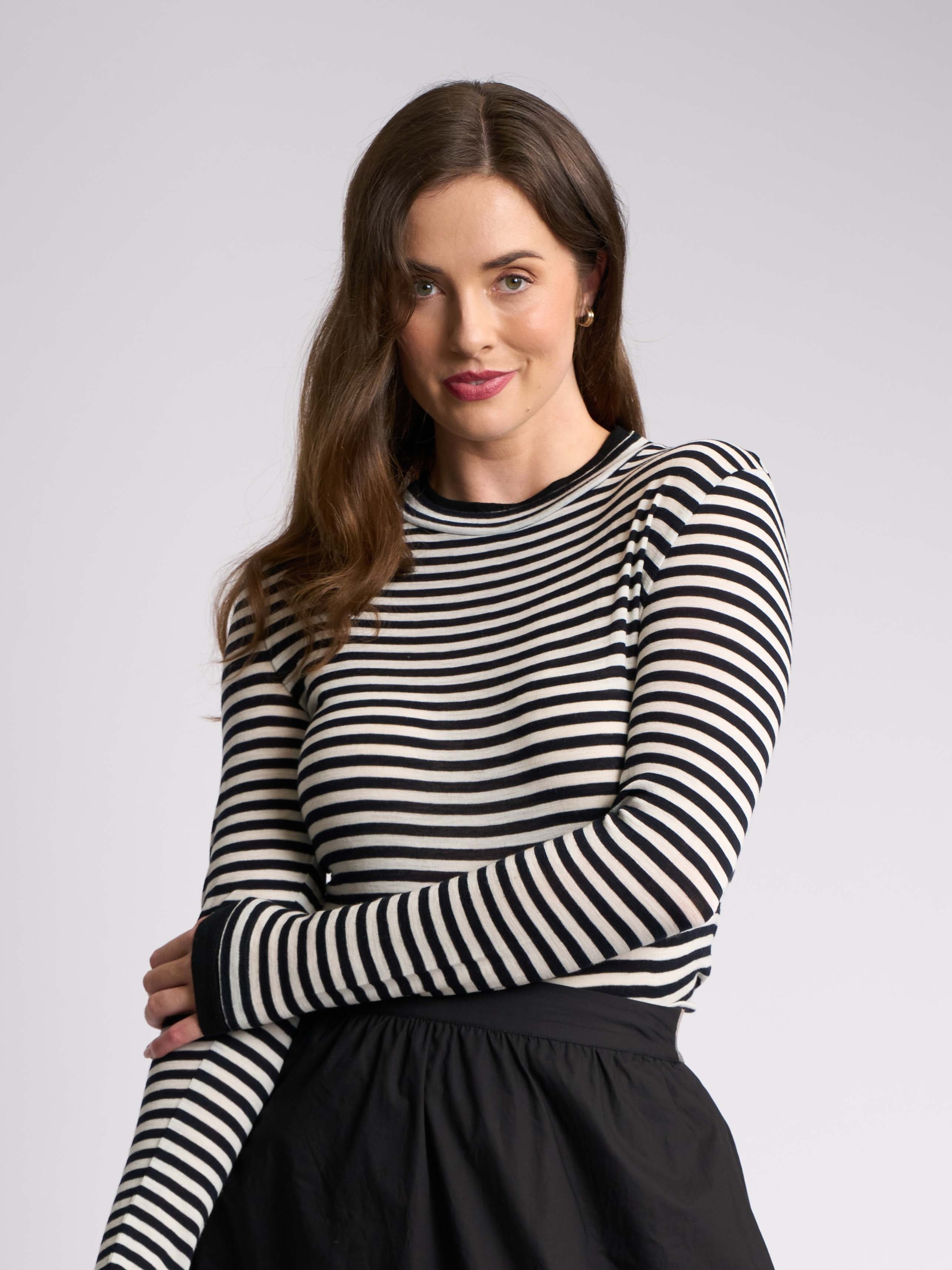Elevate your wardrobe with our luxurious mercerised merino wool turtleneck top, designed for both comfort and style. Featuring a contrast fabric at the internal neck, cuffs and hem, this long-sleeve essential adds a touch of sophistication to any outfit. Body length of approximately 66.5cm from shoulder to hem (size small), it offers a flattering fit that pairs perfectly with jeans or skirts.