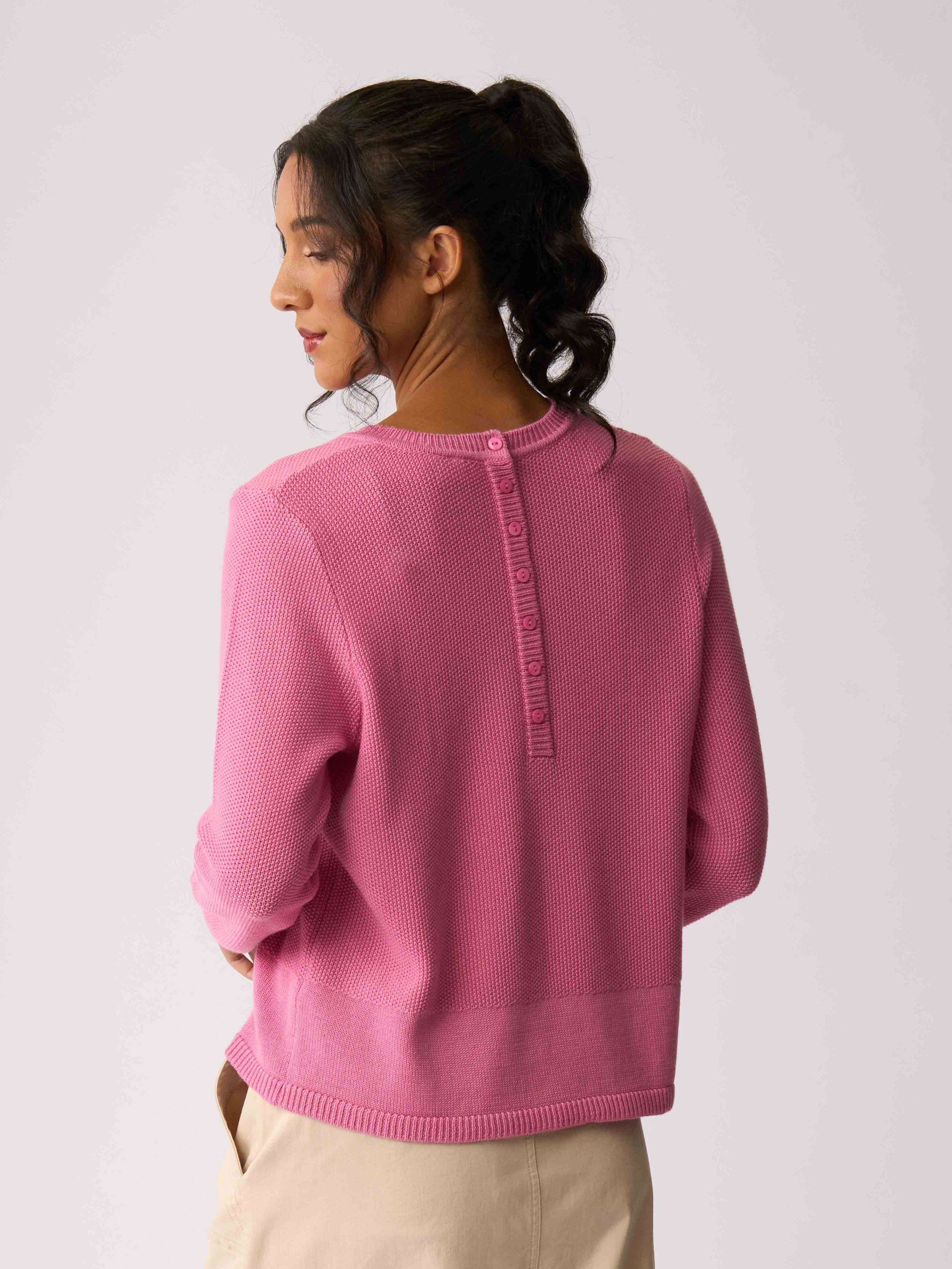 - Textured knit design throughout the body and sleeve with a panel above the cuff and hem plain knit.