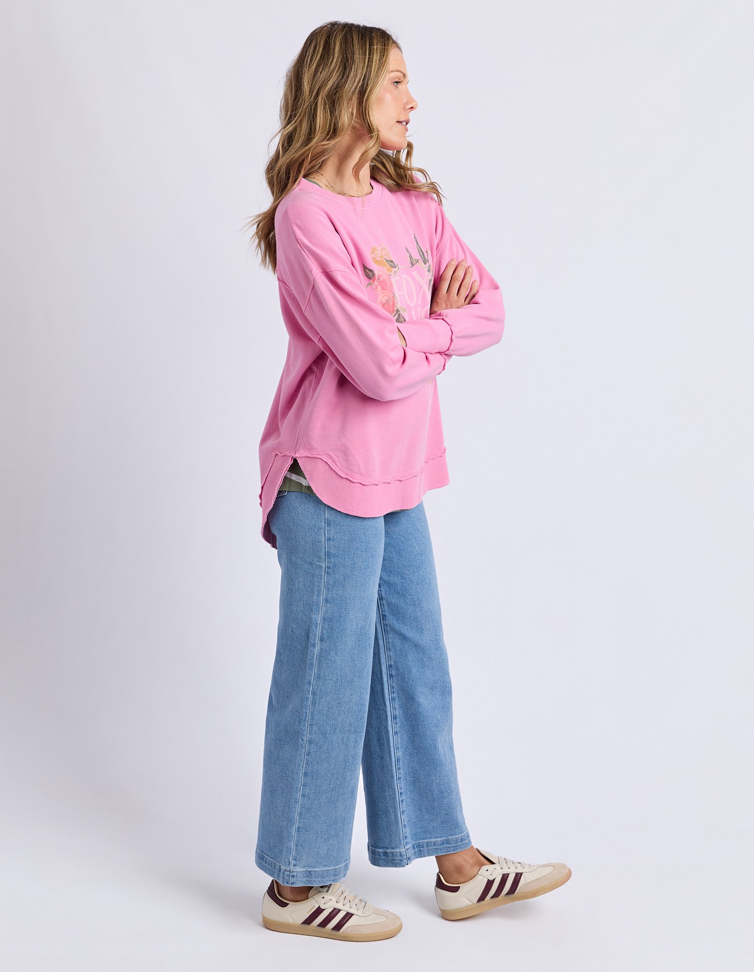 The Wild Rose Crew is the perfect throw-over for your everyday wardrobe. With its round neck, hi-lo hemline, side splits with raw edging.