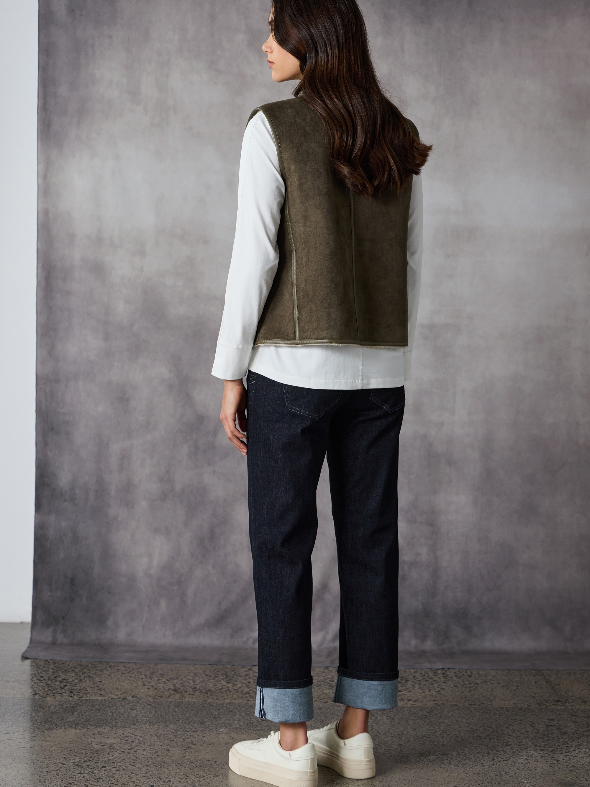 The Legal Wide Jean is relaxed fit and a full length which can be turned up for a cropped look, this style is best described as a new essential. Crafted in super stretchy denim this wide-leg jean showcases contrast-heavy topstitch and features topstitch on the back pockets. Wear it with sneakers for a casual look or dress it up with sandals.