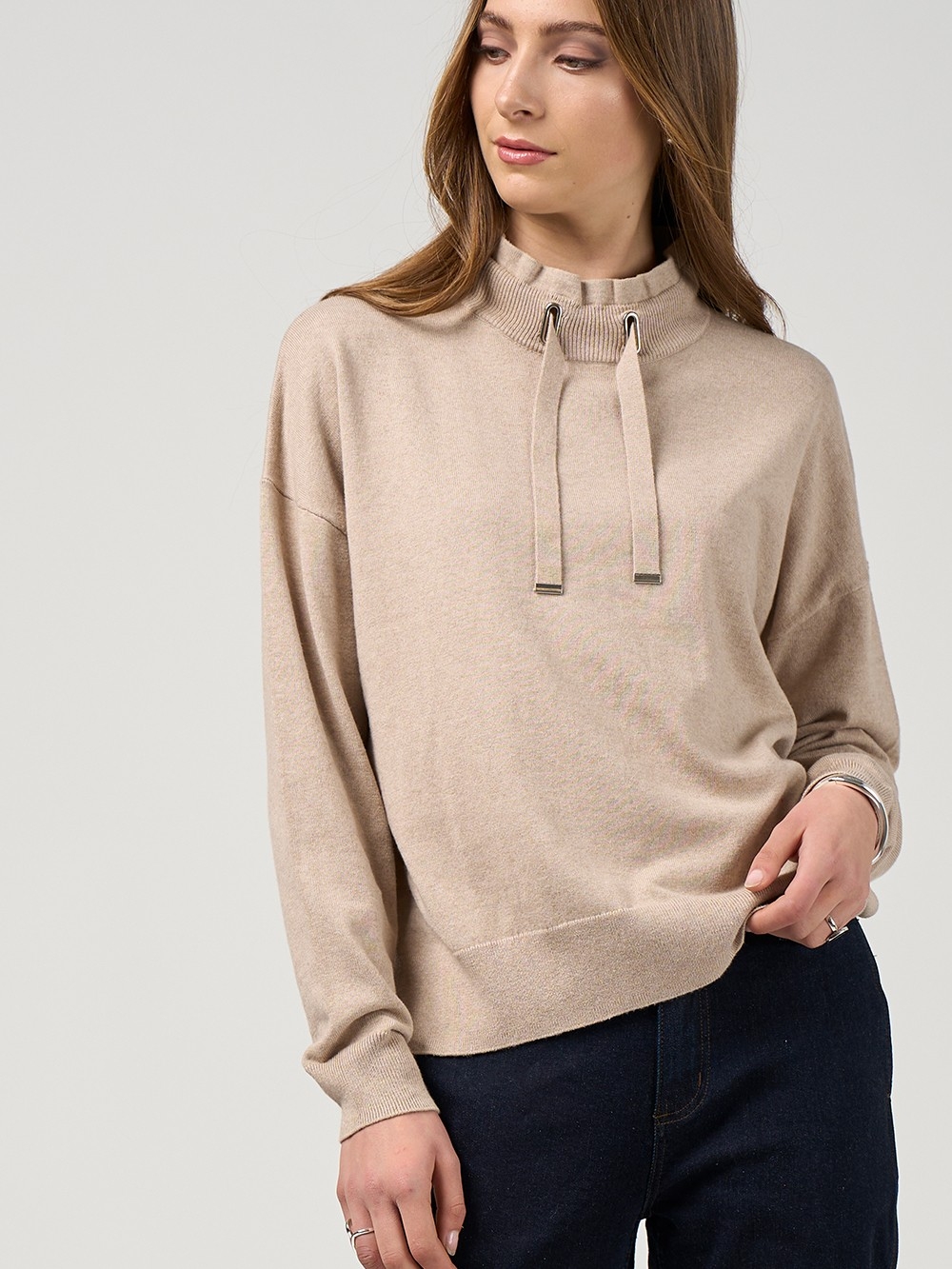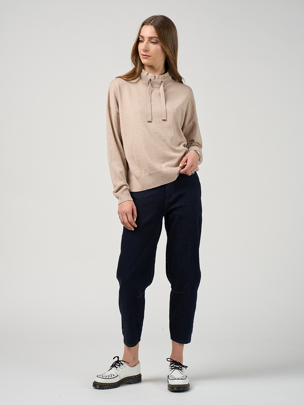 Description:High neck sweater in a soft cotton-cashmere, with a dropped shoulder and a drawstring collar, Featuring ribbing detail around neckline, cuffs and hem.Composition:95% Cotton, 5% Cashmere