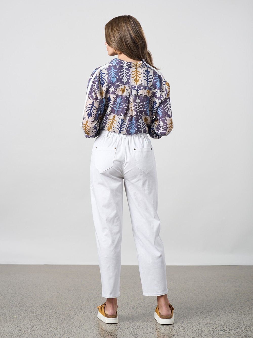 Tulip styled pant with an elasticated back waist for a perfect fit. Featuring hem tucks to create a tulip shape and add detail.
