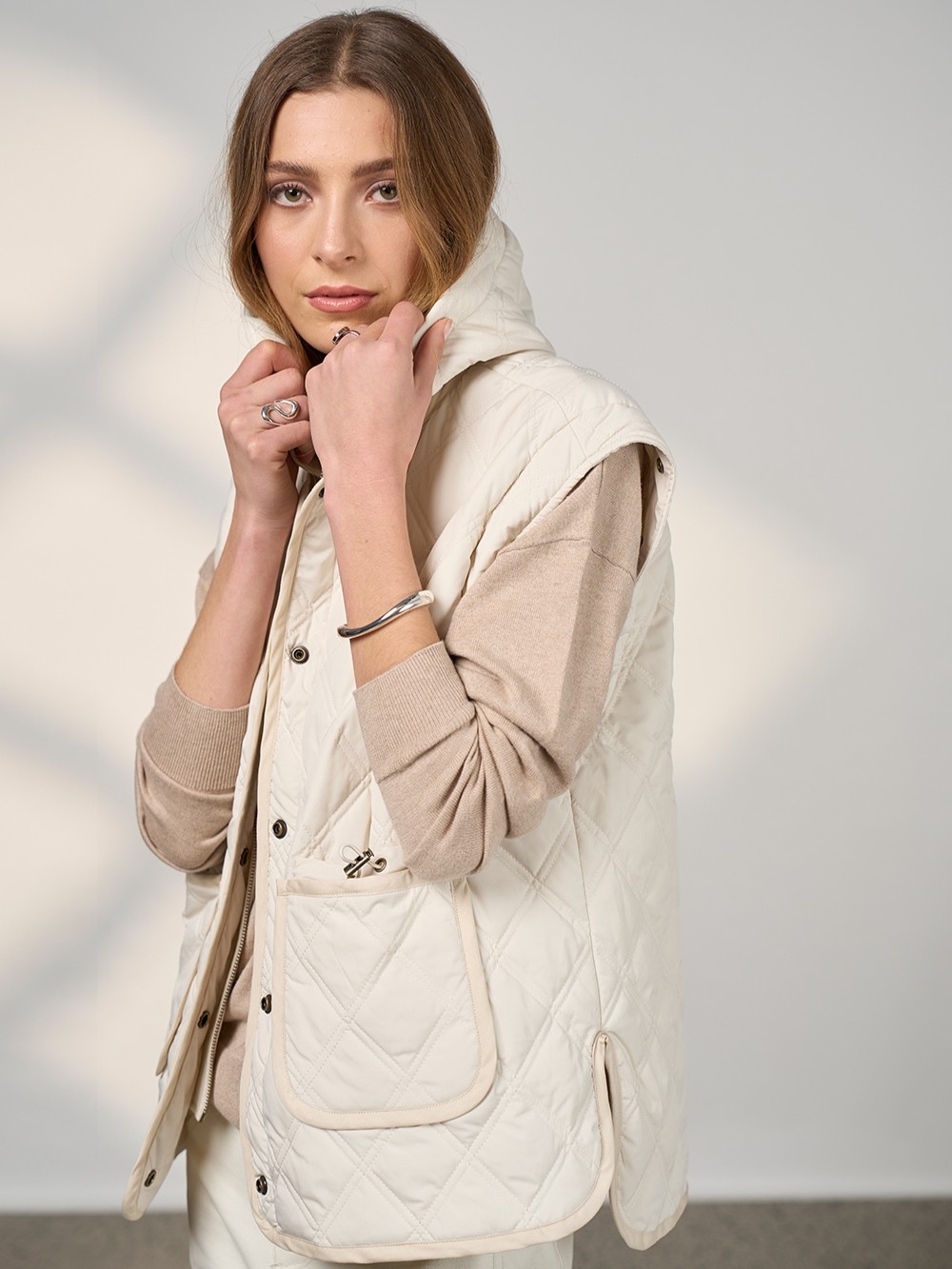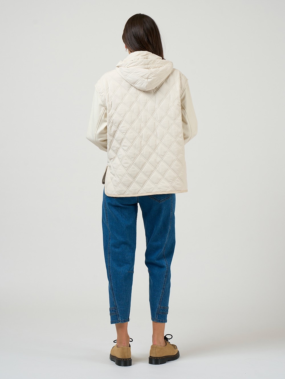Multi functional jacket with front patch pockets, and removeable sleeves and hood - very versatile giving the wearer 4 ways to wear. Fully lined.
