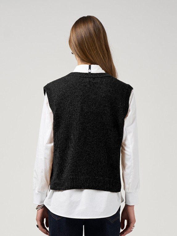 V-neck vest in a super soft merino-cotton blend, featuring ribbing detail around neckline, cuffs and hem. Perfect for layering.