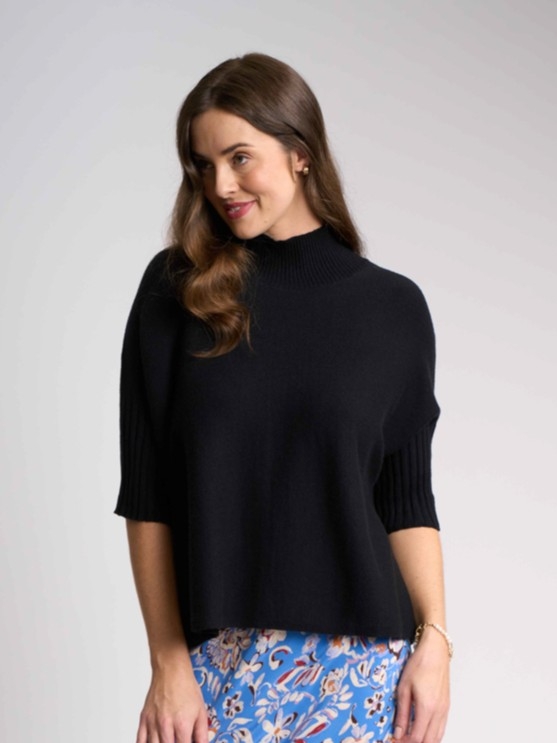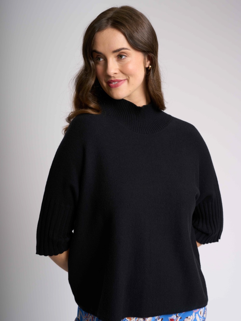 Your go-to favourite high neck jumper is designed for both comfort and style. Featuring a stylish ribbed neck and sleeve cuffs. The elbow length sleeves add a modern touch, and with a body length of approximately 51.5cm (size small), it’s the ideal piece to transition from day to night effortlessly.