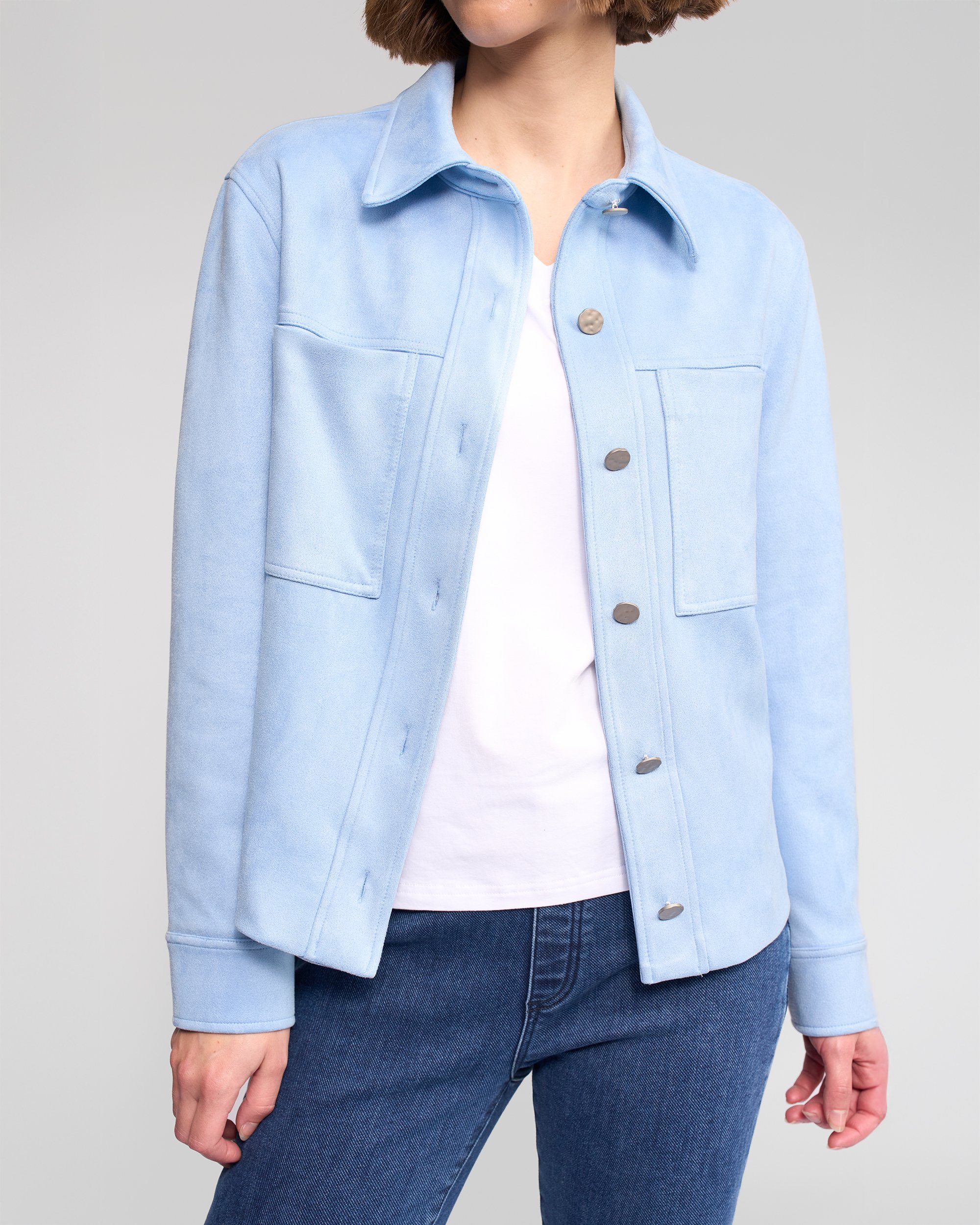 Button-up jacket in soft faux suede, designed in our Bone colourway. With its refined finish and timeless shape, this lined jacket is an easy wardrobe staple that adds softness and polish to everyday outfits.