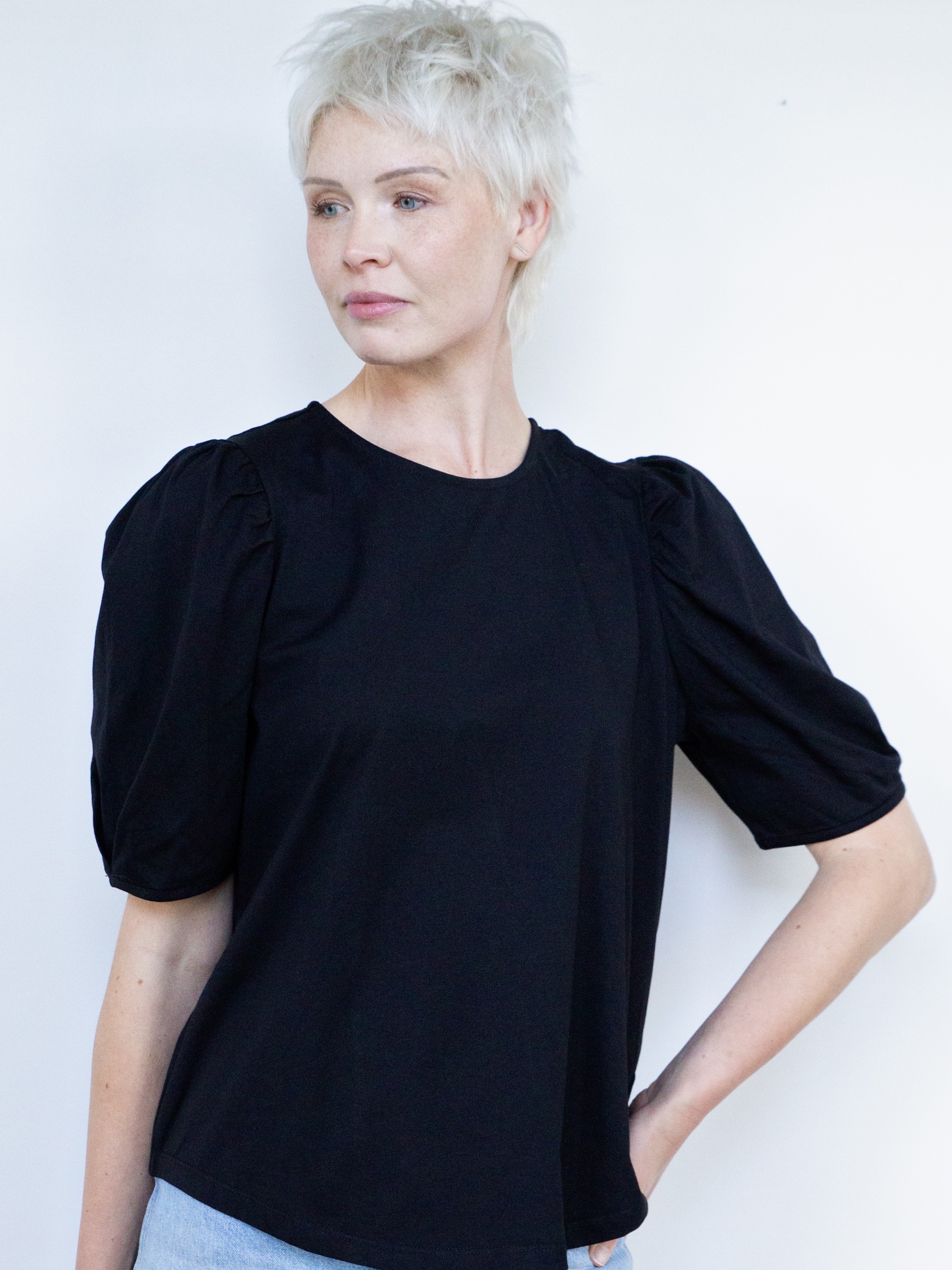 White on Black Button Back Top - STYLE-TOPS : MCRAES - White on Black S25 mcraes