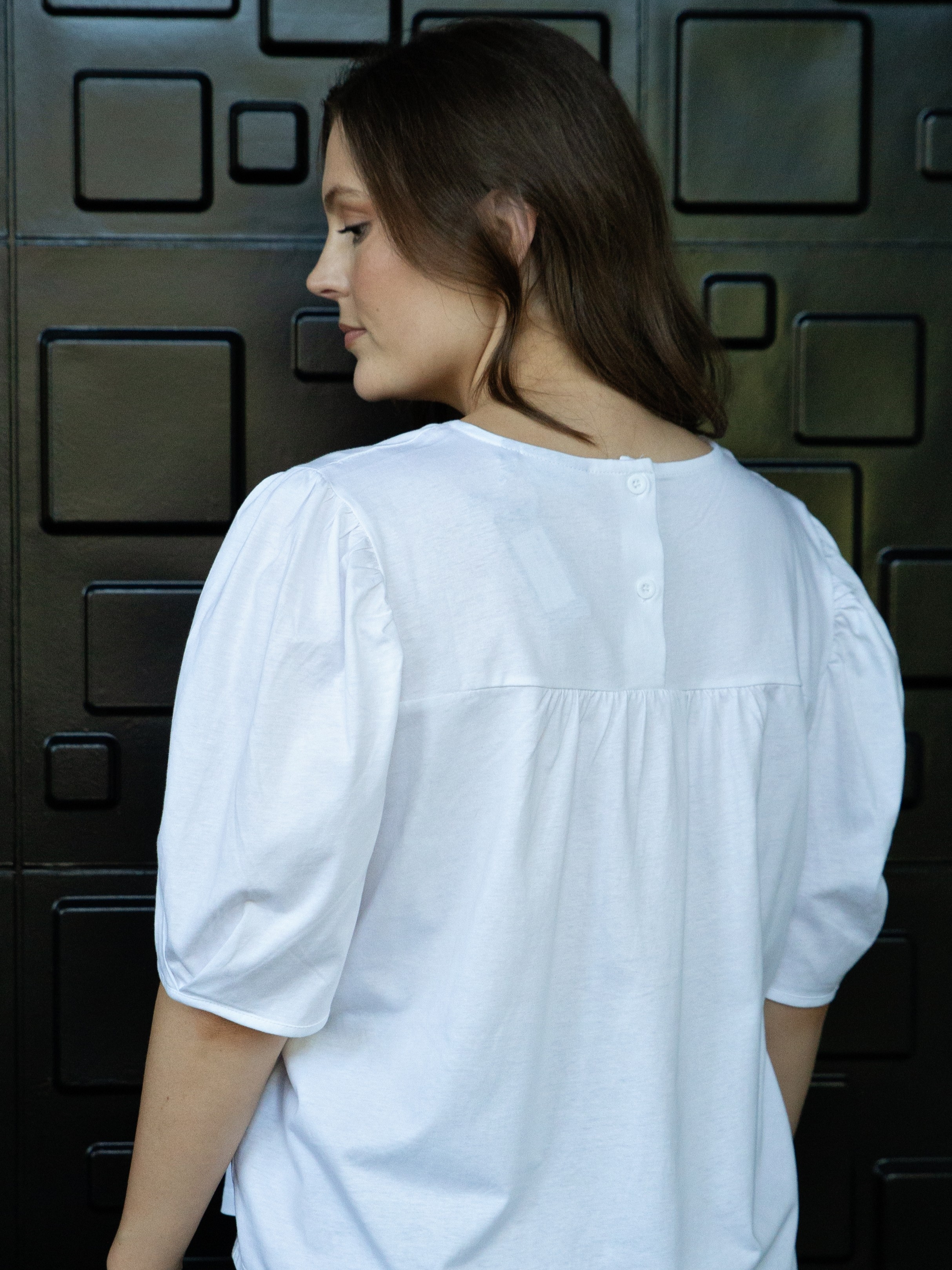 White on Black Button Back Top