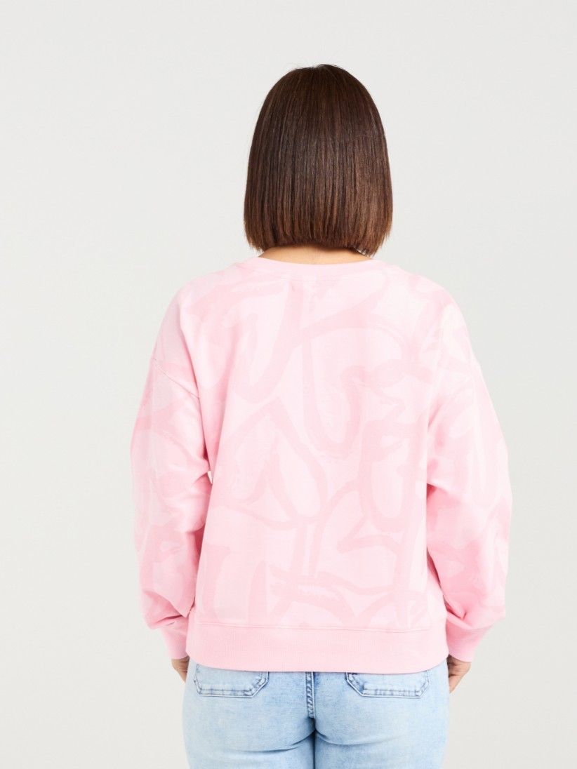 This long-sleeve jumper features a subtle painted hearts print for a gentle, playful touch. Its classic silhouette keeps the look effortless and versatile. A charming piece to brighten your winter wardrobe.